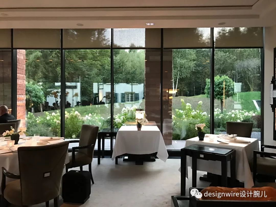餐厅的入口大门也由仿水晶图案饰制成,且历史悠久,是荷内·莱俪1923年的原创作品LAURIERS。而这扇酒店大门,也是品牌自1935 年以来,首次为顾客量身订造的大门设计。