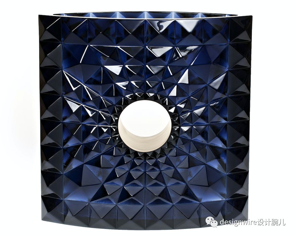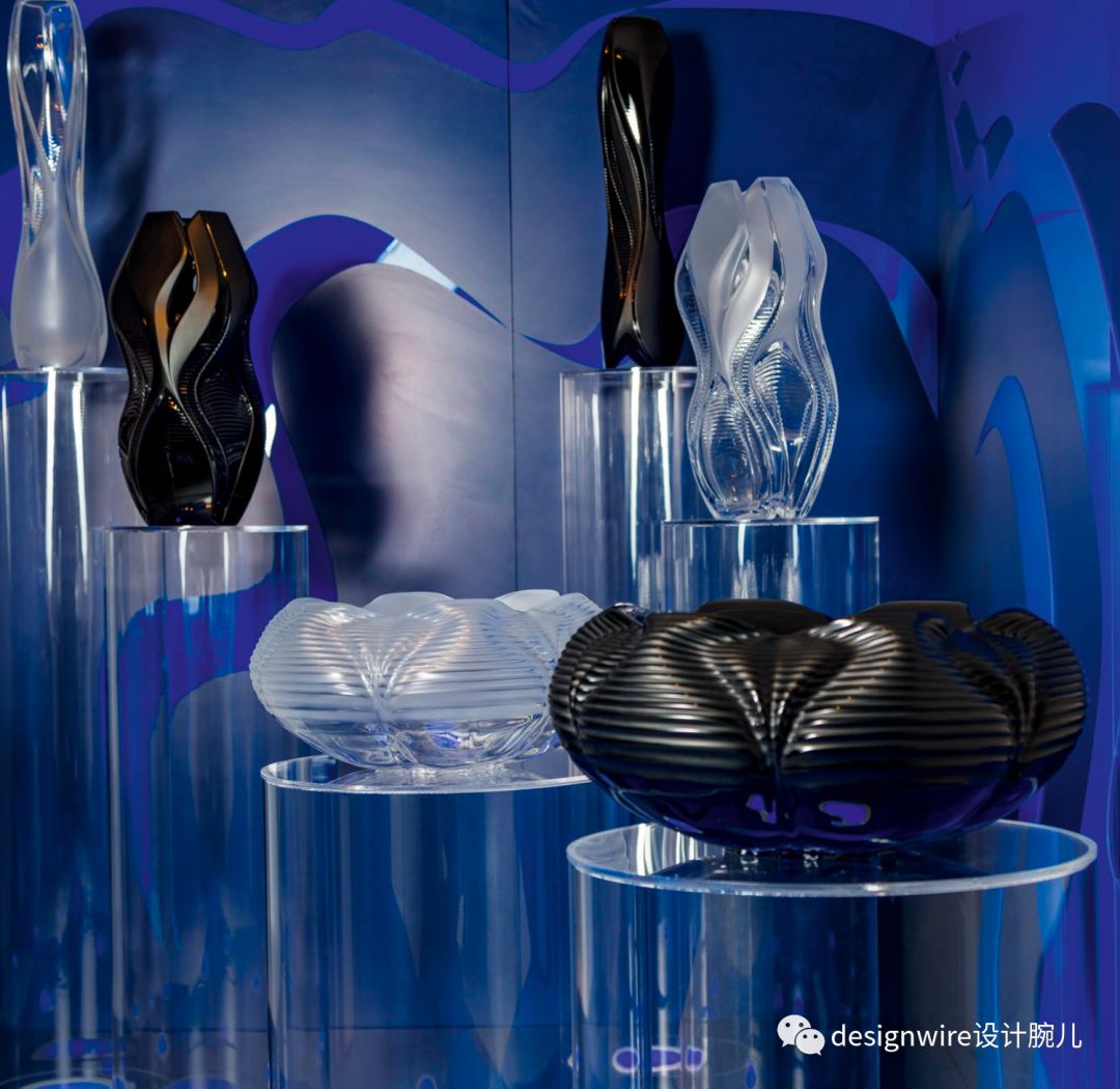 2014年, LALIQUE法国莱俪与Zaha Hadid首次合作设计了仿水晶建筑(Crystal Architecture)系列,创作出<Visio目光> 和 <Manifesto言表>两款花瓶艺术品,将水晶特质与流线艺术结合在一起,“菡萏含冰脑,樱桃滴水晶”,标志着水晶建筑系列的诞生。
