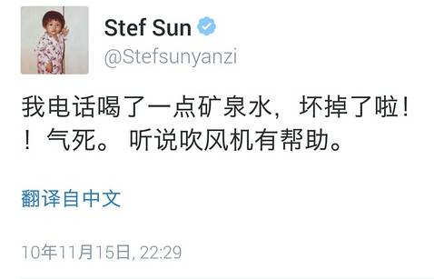 手机进水了,自己还会鬼马的说电话喝了矿泉水,天后原来你脑洞这么大啊!