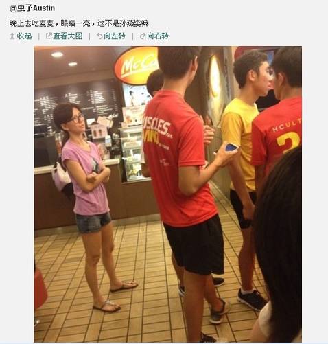有一次她素颜+短裤+拖鞋出现在麦当劳里~