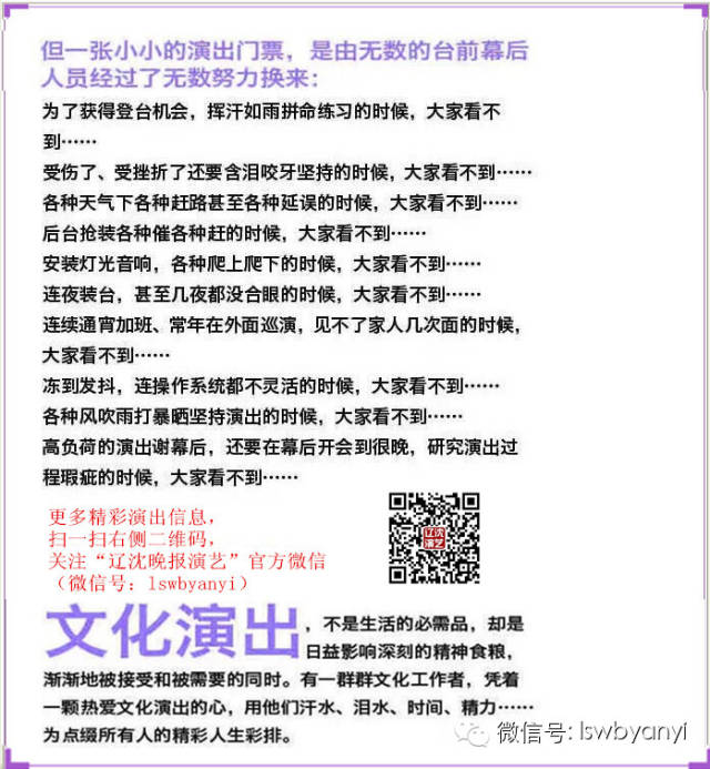了解更多演出信息,请实时关注【辽沈晚报演艺】官方微信(lswbyanyi)~