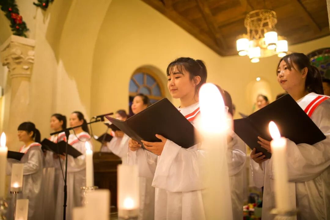 人们虔诚地坐在教堂里,聆听着唱诗班的歌声,寄托对生活的祝福,叩响信仰的力量。
