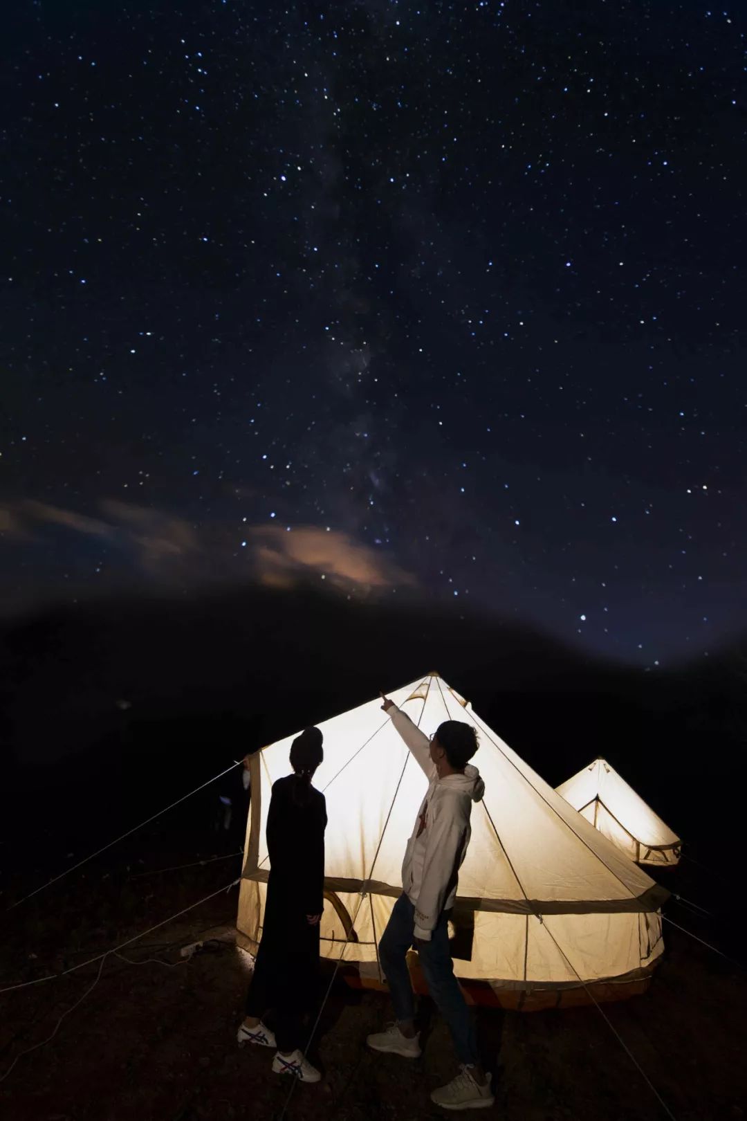 在长城星空帐篷营,守望星空,在最接近天际的地方揽星搂月。