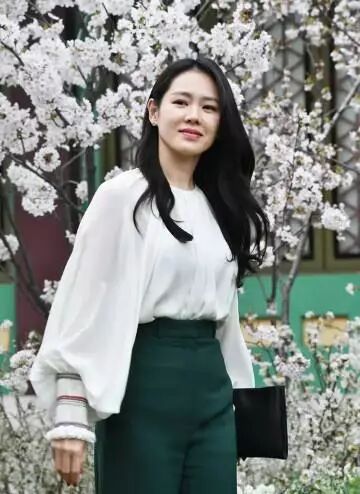 当天身着白色上衣,绿色裤子,依旧是长发披肩的温柔造型,但感觉和之前相比,脸和眼睛都有些浮肿,曾经的清纯女神也有了岁月的痕迹。毕竟孙艺珍已经37岁了,现在的她也是这个年纪该有的样子吧。