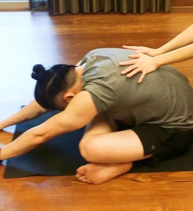 在瑜伽教练的带领下