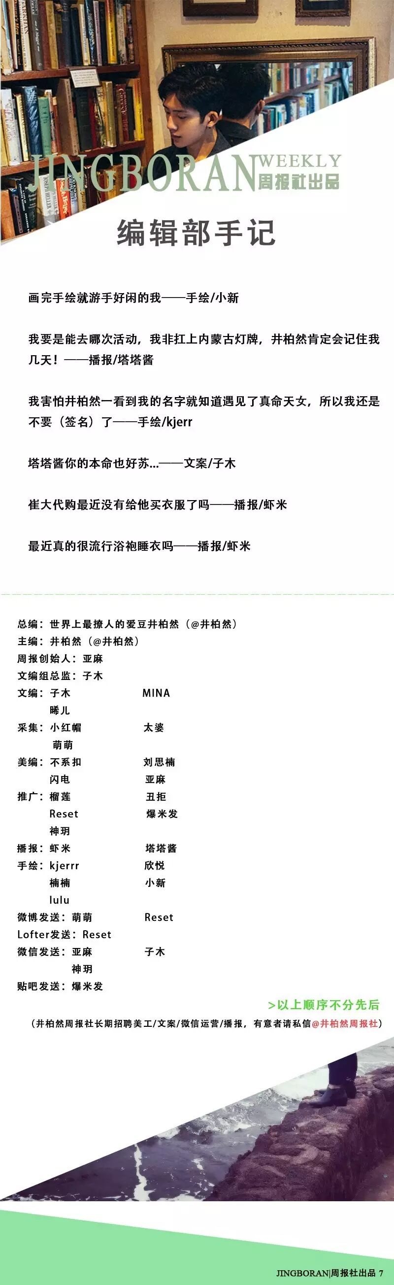 20160528【第17期】井柏然周报社周报 内地男星 2016-05-28 21:05:06 132 创作不易,用心坚持,欢迎请BaGua喝几杯爱心咖啡!打赏并支持本文 打赏并删除本文 井柏然周报社有种欲望神秘而动人。想听你听过的歌,想喝你喝过的酒,想读你读过的诗,想踏你踏过的路。谈着追逐探着头,看你看过的世界,等你想等的远方。不必担心,我们能够习惯远距离,换着方式表示想念。这周,爱身不由己延绵,你一如既往耀眼。向下滑动图片有惊喜井柏然周报社出品<只为井柏然收集点点滴滴> 创作不易,用心坚持,欢迎请BaGua喝几杯爱心咖啡!打赏并支持本文 打赏并删除本文 感谢您的支持鼓励,我会继续努力的!文章地址:用户邮箱:打赏金额:USDT 请输入数字点击”去打赏“,即可进行打赏支持本文章哦 井柏然 发表评论