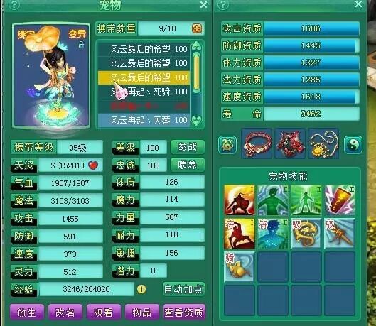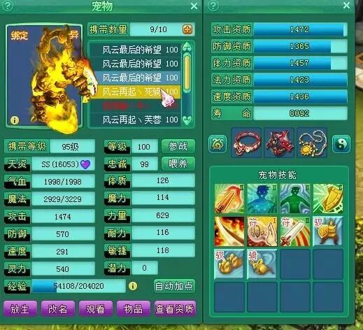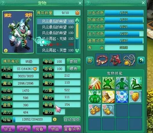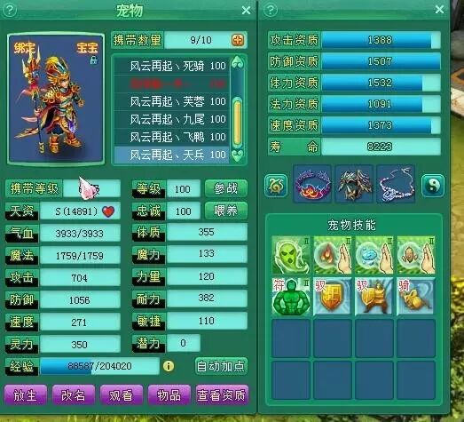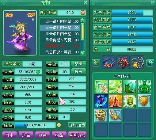 李来点评下吧:宝宝的话都是全靠时间弄得看得出,猴子资质比较亮眼还是5技能。需要改进的是,感觉这个大嘴鸡只有1000速度,这个可能速度不够你队伍的封系快吧~烈焰感觉还是要加点速度好点,我怕你这个没出手就挂掉了,其他并无大碍。