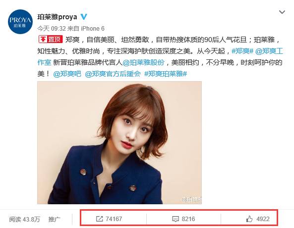 对于珀莱雅来说,选择郑爽并非仅限于其在广大年轻群体中的强大号召力,也是希望通过其阳光率真的形象特点,赋予品牌更多新鲜活力元素,并推动自身产品、代言人和广大粉丝三者之间形成良性互动,加速品牌年轻化进程。
