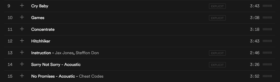 唯一在新专中与Demi合作的Lil Wayne,其合声的”Lonely”成为了专辑中另一亮点。Lil Wayne慵懒沙哑的声线为Demi嗓下“heart break”之意推入了一支催泪剂,听着太令人心碎了。
