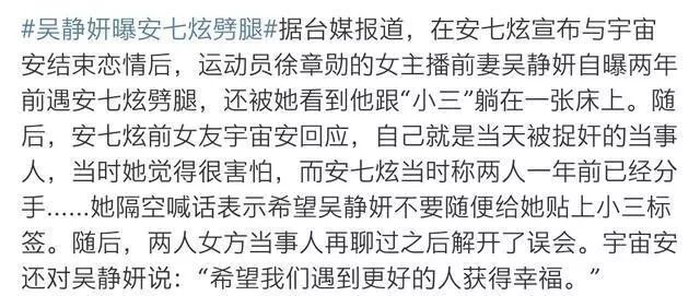 还有吴静妍身边的朋友说其实安七炫还劈腿了其他人,但是她们没有站出来说罢了。