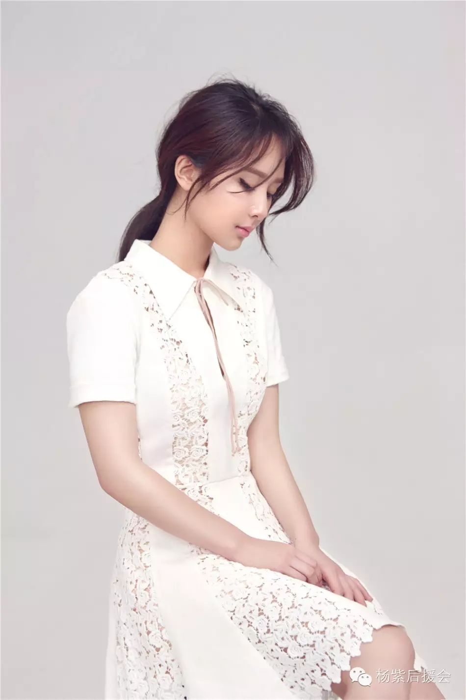 在此次曝光的时尚大片中,杨紫身着一袭白色镂空优雅连衣裙,秀发半拢半散,搭配浅浅的微笑,为暑意渐浓的初夏带来恬淡舒爽的徐徐清风,清新恬静,沁人心脾。领口的细带蝴蝶结和细小的星星配饰不经意的点缀,充满艺术感而又有特别浓烈的英伦怀旧气息,整体感觉时尚复古又充满想象力,举手投足间流露出温婉大方的气质却又不失少女的天真。