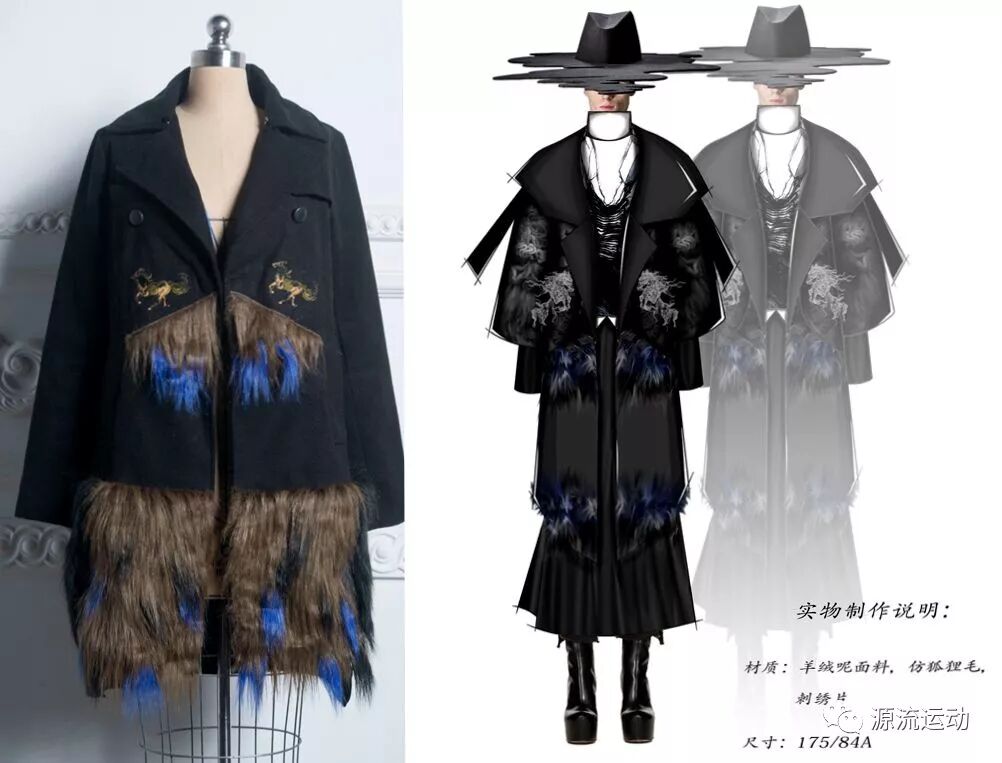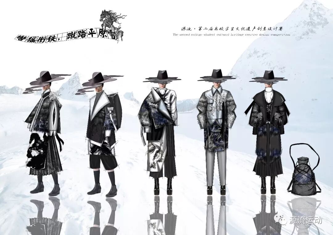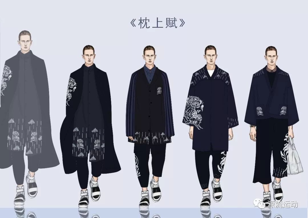 灵感来源于骏马,马具有活力充满生机,一直是领头的象征,故有一马当先。我从宋代文人张炎的词中提取了设计点,词中作者看到在平原上放牧过去的战马所引起的感慨,久经沙场的战马渴望投入战斗,就像有才能的人渴望为国家出力一样,振兴祖国。表达了宋人思想的自强不息,对美好生活和艺术创作的向往。设计理念是通过这一灵感源焕发宋代千年厚土之下无穷时尚与风雅之力,令时尚返璞归真,宋代风雅与当代文化紧密相连,一马当先引领时尚潮流。
