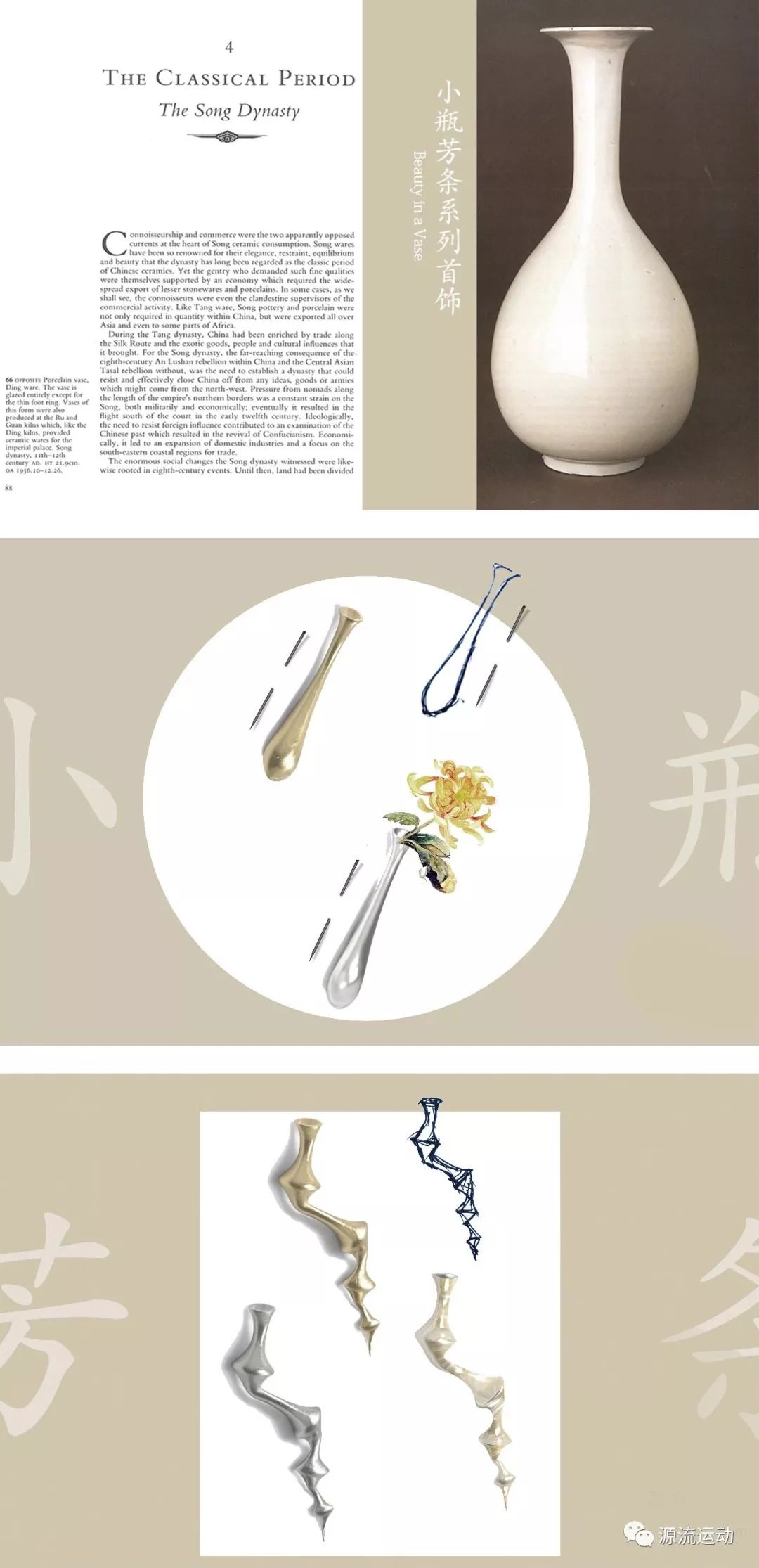 宋代花器清简雅正又饱含浓浓烟火气,其包容性使首饰的现代设计更具普遍意义,在清晨随意抬⼿插枝,在恬淡适意的状态中更易品出精雅的生活美学。