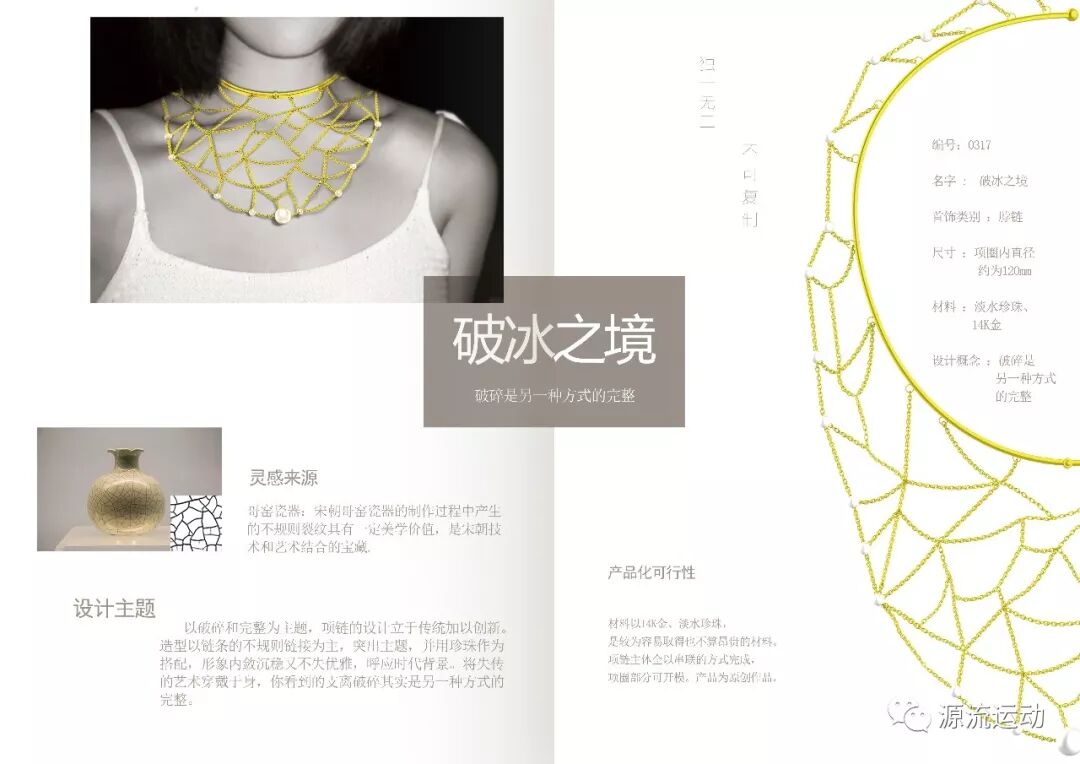 灵感来源于哥窑瓷器的冰裂纹,其制作过程中产生的不规则裂纹具有一定美学价值,是宋朝技术和艺术结合的宝藏。该脖链以破碎和完整为主题,立于传统加以创新。造型以链条的不规则链接为主,并用珍珠作为搭配,形象内敛沉稳又不失优雅,呼应时代背景。代表着每个人都是独一无二的个体,你看到的支离破碎其实是另一种方式的完整。