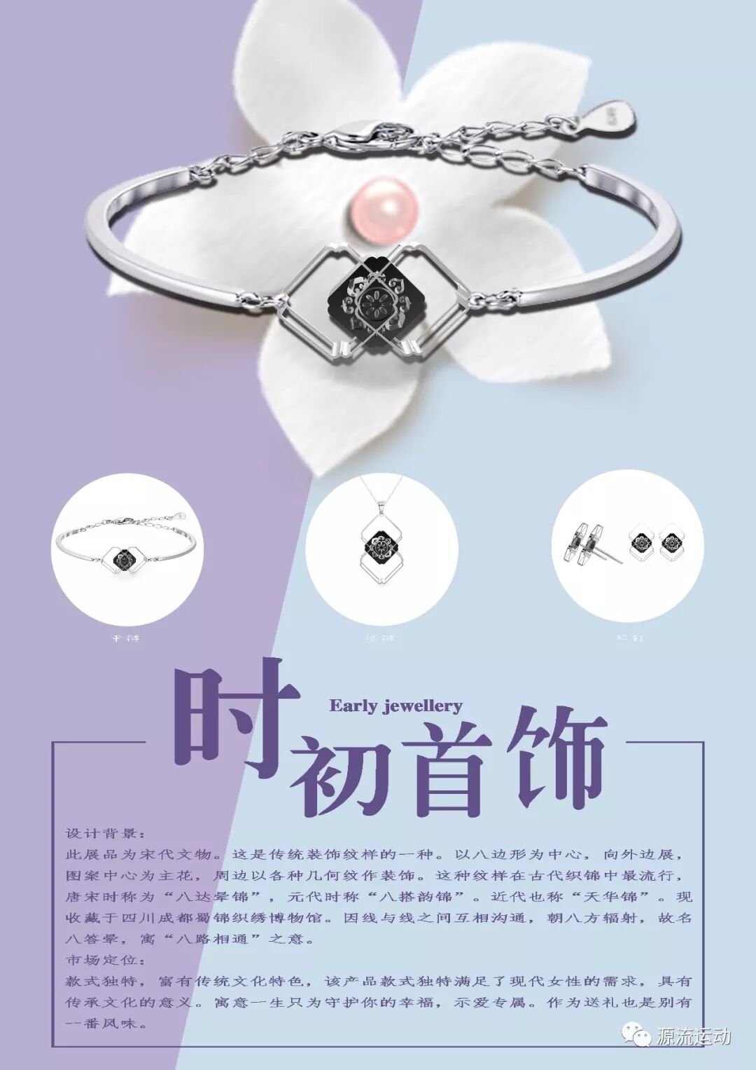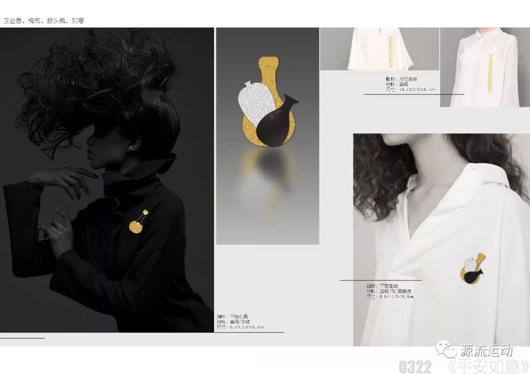 此饰品款式独特,富有传统文化特色。而古今文化的交融,使作品既有宋代的静谧之美,亦不乏当代设计之时尚简约。用强烈的的黑白色突显设计感和古典元素,来体现中国文化无尽生命力,历史的沉淀,和中国式华丽、时尚、优雅。