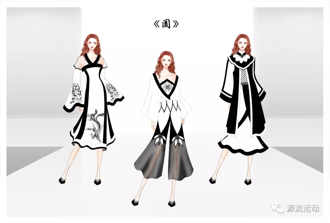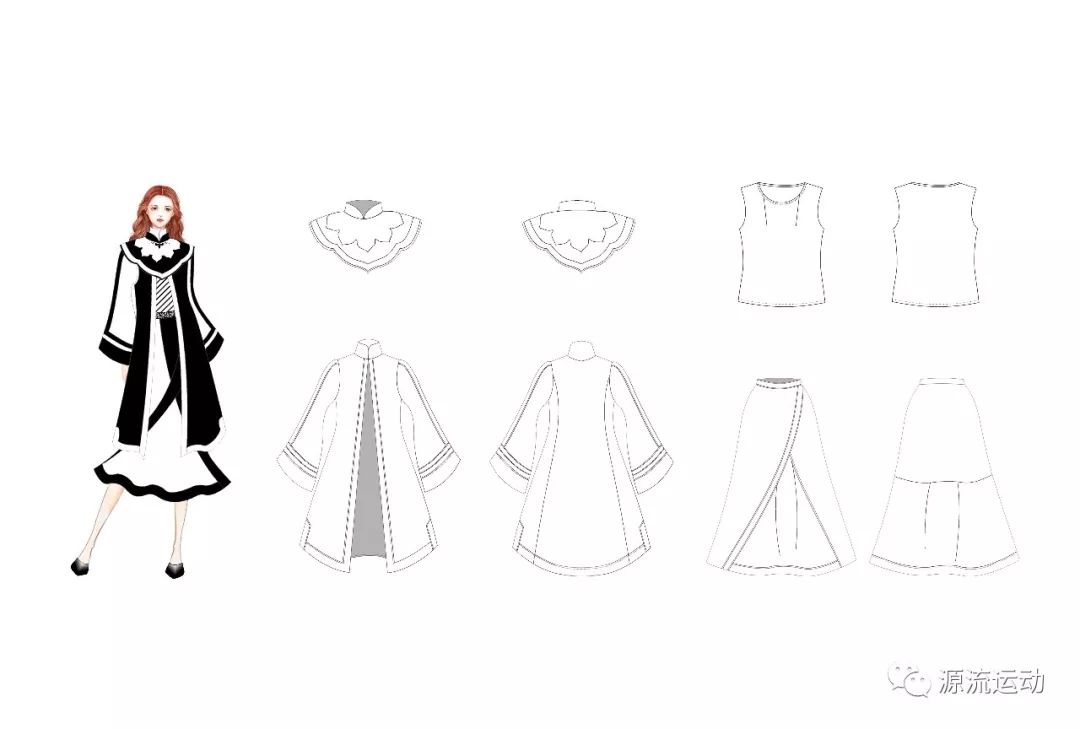 作品由宋代偏重寓意的装饰艺术,以及服饰结构启发设计灵感。将典雅大方的凤凰牡丹装饰纹样,运用于服装图案中,服色也使用宋朝百姓喜爱的黑白两色,营造出优美的宋朝意境。