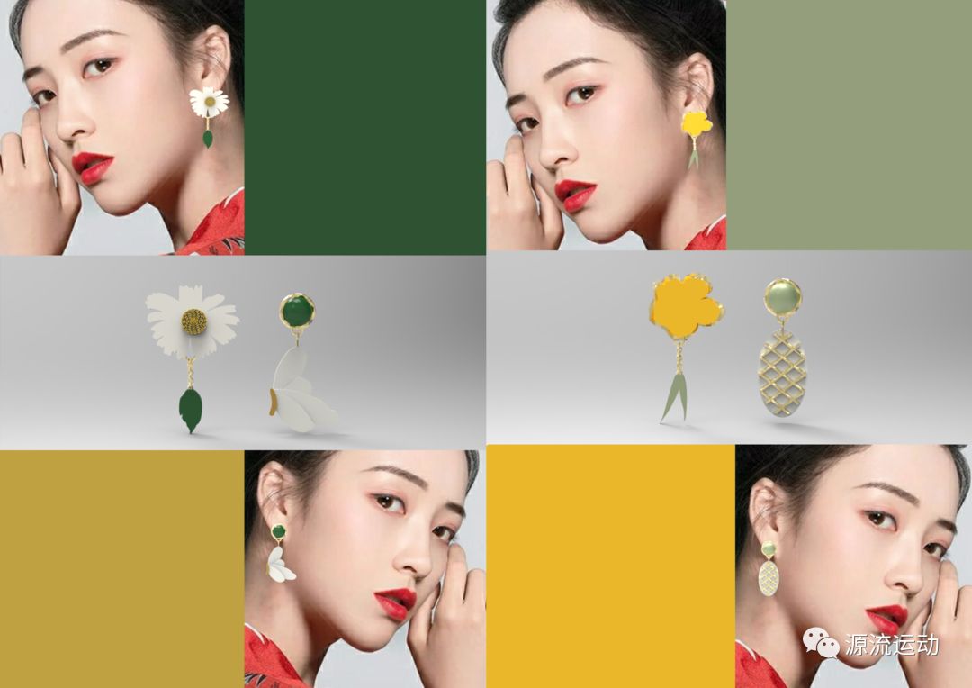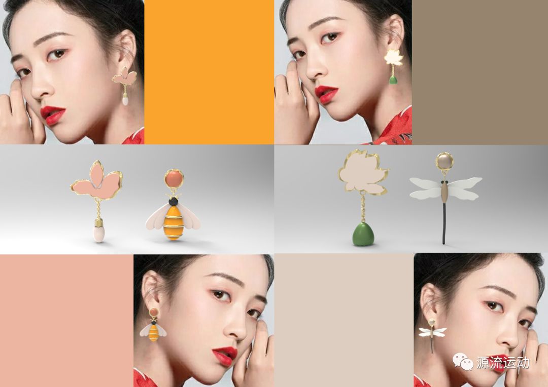 在繁华绚烂的唐代之后,宋代文化内敛优雅。宋代各种首饰门类因为特定阶层的女性角色而一并蓬勃发展起来,是一个发展的大期。而宋代金银首饰中最常用到的题材就有桃实、蜂采花、蝶赶菊等。根据这些题材,结合宋画将昆虫与花朵结合起来,同时附属于四季,制作出一个系列产品。通过简约优美的造型表现出风雅宋的美感。