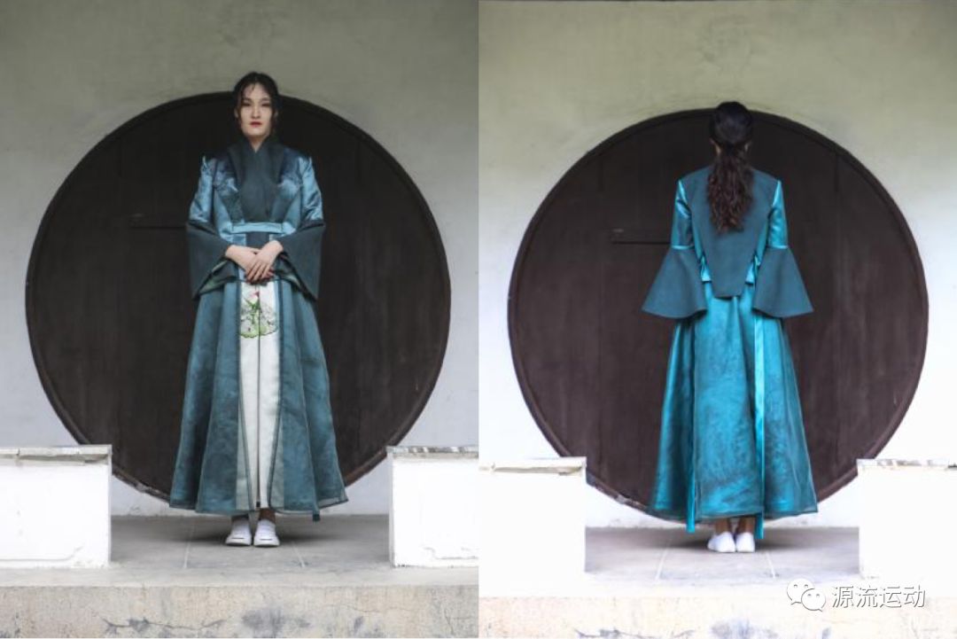“阖”意为相合,尤指宋服与当今时装的结合。“窄袖”“对襟”“长裙”,作品将宋服与现代服饰相糅合,针对宋服的款式特点进行解构重组,以新的设计角度展现。清秀内敛、淡雅自然的宋风,又将跃然于人们的视野。