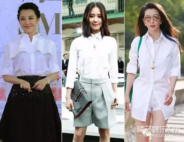 相对于今年流行的蓝色条纹衬衫,白衬衫在时尚圈同样也是始终屹立不倒的时髦单品。优雅简洁大方的款式也是深得女明星的喜欢。