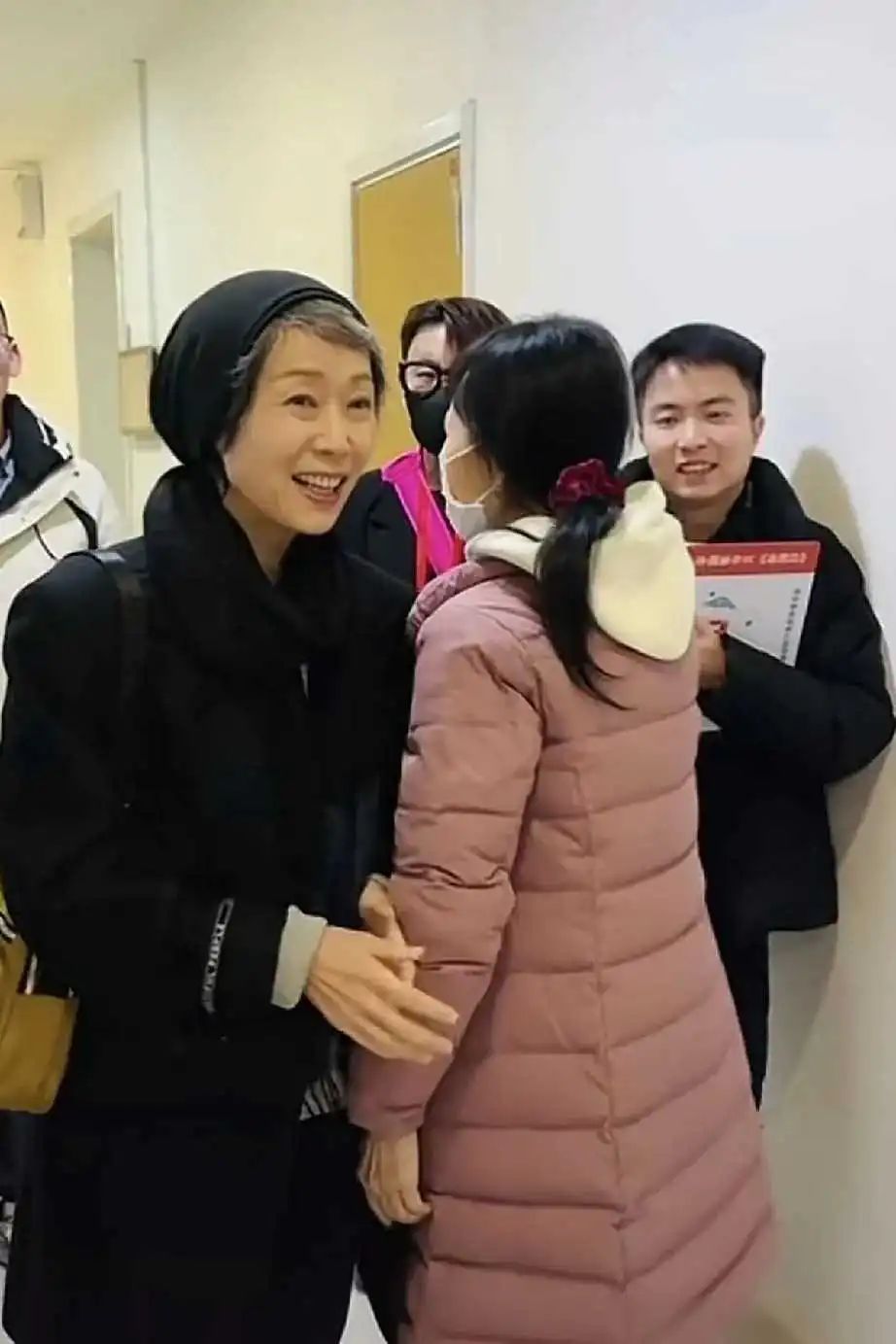 叶童跟小青的扮演者陈美琪在后台见面,叶童满头引发穿黑色长款外套,给人很干练时髦的感觉,再看看陈美琪就是很素人的打扮,穿着最普通的羽绒服,而且是随意扎的低马尾,有点凌乱不堪。