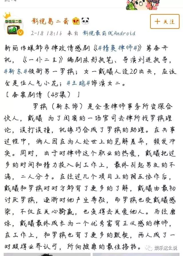 靳东最近有一部新剧即将开机,它的名字叫做《精英律师》。看到了男主,人们就会想到女主是谁。我们先来说一下女二。女二是王鸥,还记得王鸥和刘恺威的事件,也就是那个事情,王鸥的人气是涨上去了,可是有人不喜欢她。