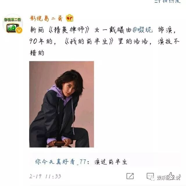 说完了《精英律师》的女二,人们就会想到女主是谁。女主是一位人气小花。她的名字叫做啜妮。听到名字的时候是不是不太熟悉,她是《我的前半生》中洛洛的扮演者。去年在《创业时代》中有过出演,可以担当小花,一定是有实力的。相信她的演技可以饰演出剧中戴曦的形象。