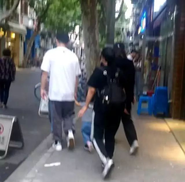 看到迎面而过的明星夫妇,网友只来得及拍一张背影照。