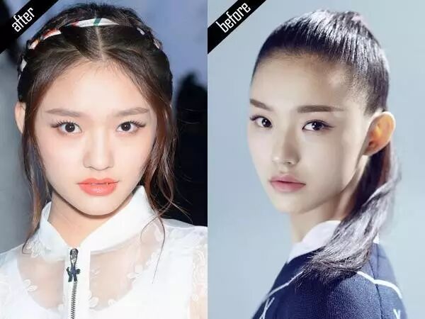 林允本身脸型还是比较完美的,把所有头发扎起来显得很干练。但如果有了两侧的碎刘海会柔和脸部线条,还多了一股清风徐来的少女青涩气息呢~