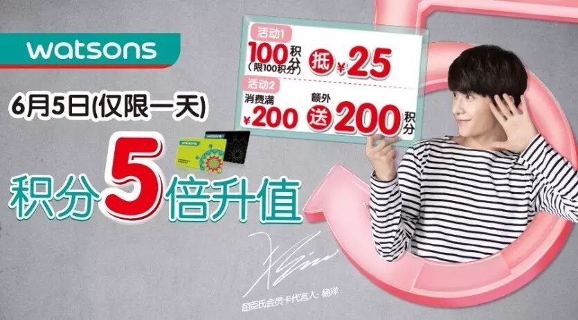 活动当天会员购物时,使用的屈臣氏积分可升值5倍抵扣金额。