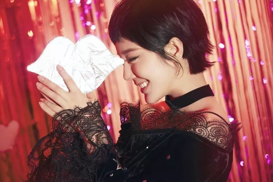 赵奕欢也利用蕾丝彰显性感,整体的粉色朋克风配以短发造型以及心形元素,叛逆的少女中风又多了一些利落与帅气。