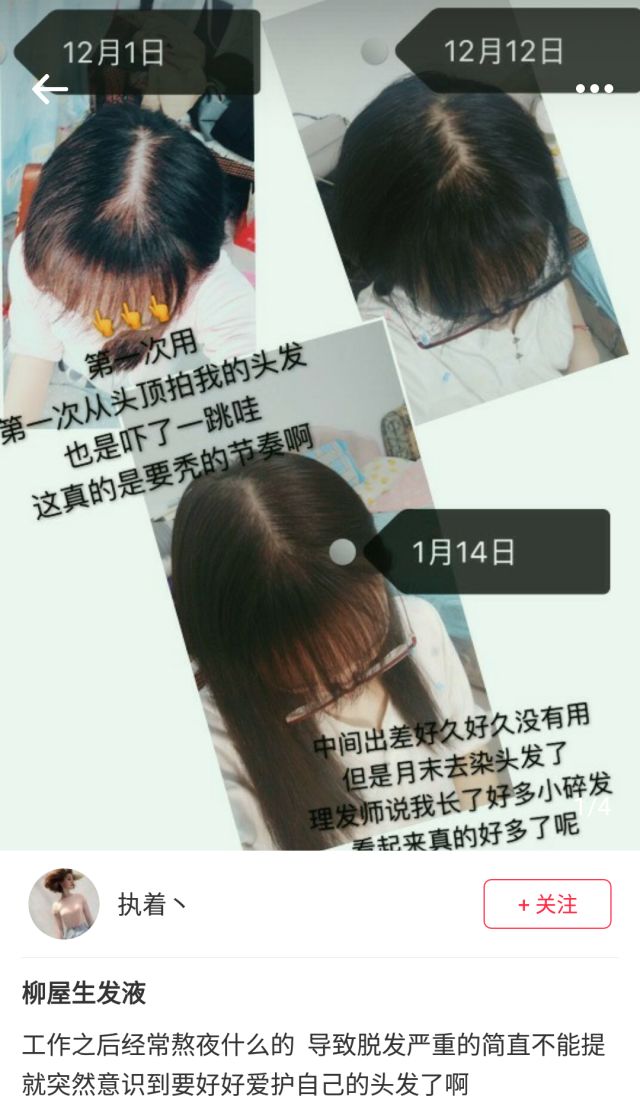 她说:柳屋生发液,能让她长出好多小绒毛,把头发撑得很蓬松,这样每天都跟洗完头一样飘逸~~