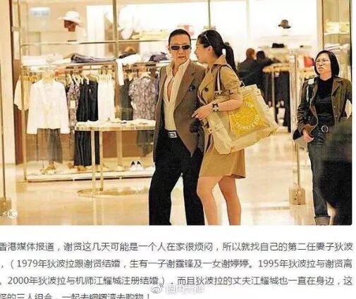 2007年,两人不过是购物,媒体报道谢贤一向保养得很好,仍保持头发浓密和肌肉结实,还经常与年仅23岁的女友CoCo出双入对。
