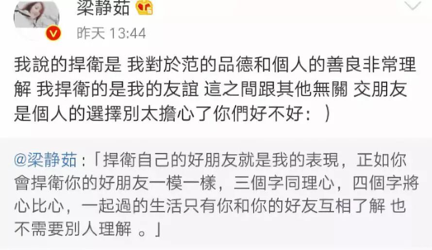范玮琪本人则转发回应称:“我没有背叛友谊,你不认识我,这样说我很难过。”
