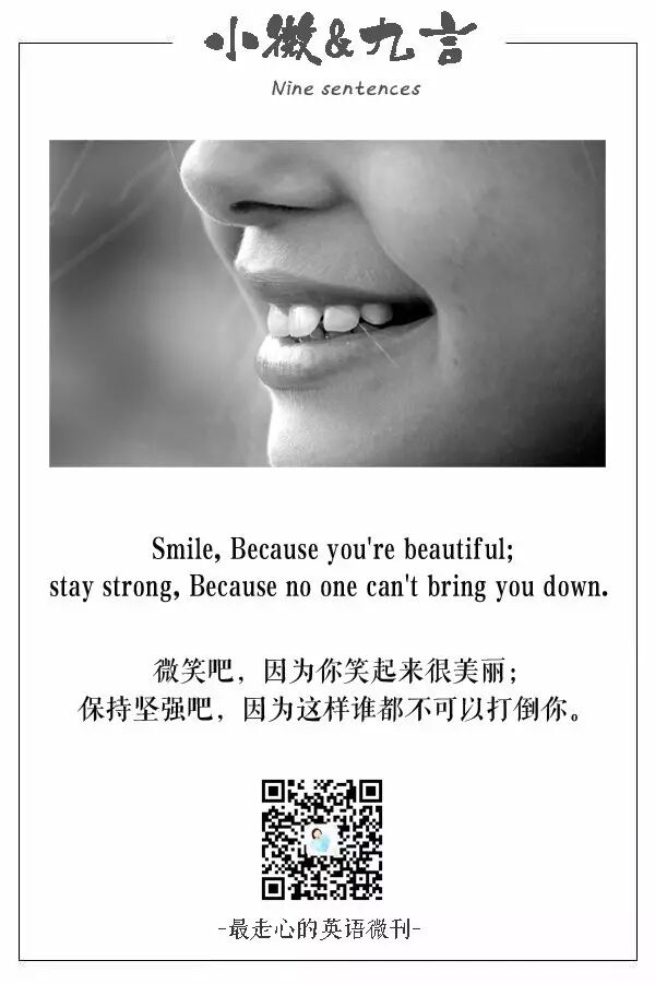 微笑吧,因为你笑起来很美丽;保持坚强吧,因为这样谁都不可以打倒你。