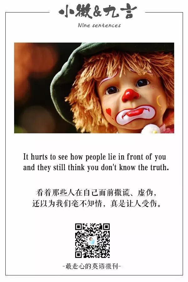 看着那些人在自己面前撒谎、虚伪,还以为我们毫不知情,真是让人受伤。