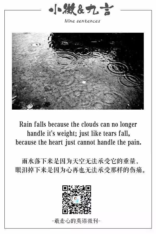 雨水落下来是因为天空无法承受它的重量,眼泪掉下来是因为心再也无法承受那样的伤痛。