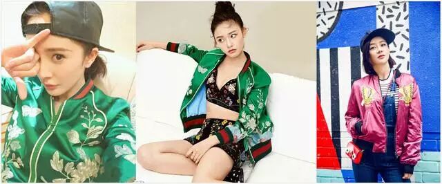 杨幂林允都选择了绿色的刺绣夹克,翠色欲滴尽显青春活力,而刺绣又提高了夹克的质地,袁珊珊选择玫红色,搭配背带裤与棒球衫看起来可爱又时髦。