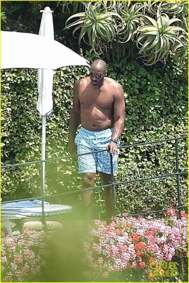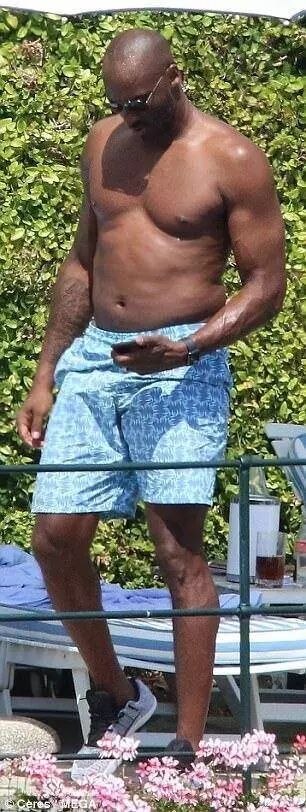 他被拍到一组赤裸着上身在泳池边休息的照片。