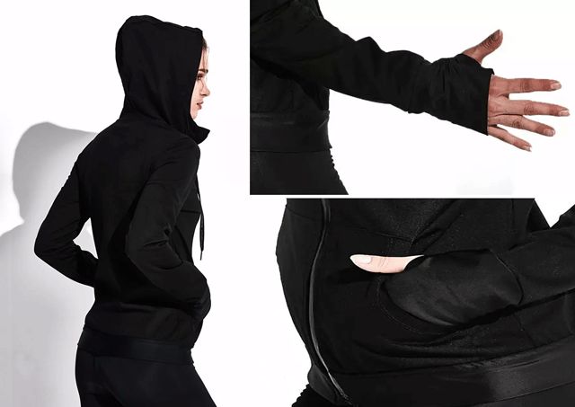 而连帽设计在户外运动时还能够有效遮风挡雨,并且袖口位置还特别设计了拇指扣,让袖口在运动时也能固定位置,不会跑上跑下。