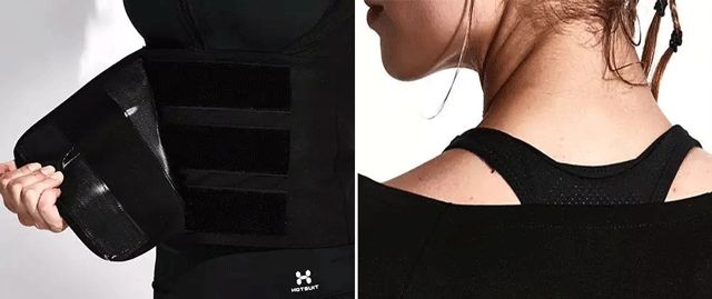 特别在腰部做了束腰设计,后背至手臂处都是银涂层,主要针对腰部、背部及手部赘肉集中暴汗,加速减脂效果。