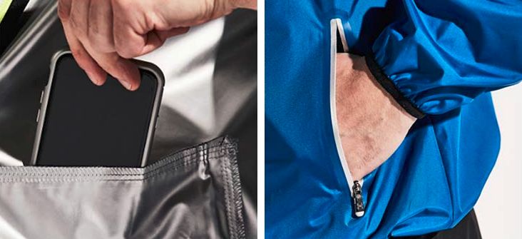 外套两侧有拉链口袋,内侧也有隐藏口袋,可以放一些像手机、钱包等贵重物品。