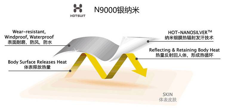 这要归功于它利用银纳米技术和布料结合而成的专利发汗科技 Hot-Hanosilver™。