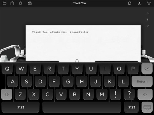 作为一位打字机爱好者,汤姆·汉克斯最近推出了一款打字APP——Hanx Writer。这款仿打字机的复古iPad应用于8月14日在苹果App Store上线,目前已经登顶iTunes App Store的排行榜,不仅在效率类应用排名第一,而且总体排名也是第一。