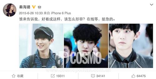 秦海璐还会像我们喜欢小鲜肉一样喜欢着韩星,她最爱的当然就是灿烈啦。