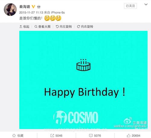 生活中秦海璐过得很简单,是一个很纯粹的人,看她的微博和采访就会发现她是个少女心爆棚的人。