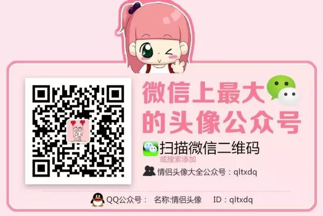 在【情侣头像大全】微信后台回复: 回复“1”查看【史上最全情侣头像集合】 回复“2”查看【2016最新情侣头像】 回复“3”查看【一左一右男女情侣头像大全】 回复“4”查看【最唯美小清新情侣头像】 回复“5”查看【欧美范儿酷帅情侣头像】 回复“6”查看【萌萌哒卡通动漫情侣头像】 回复“7”查看【女生头像大全】 回复“8”查看【男生头像大全】
