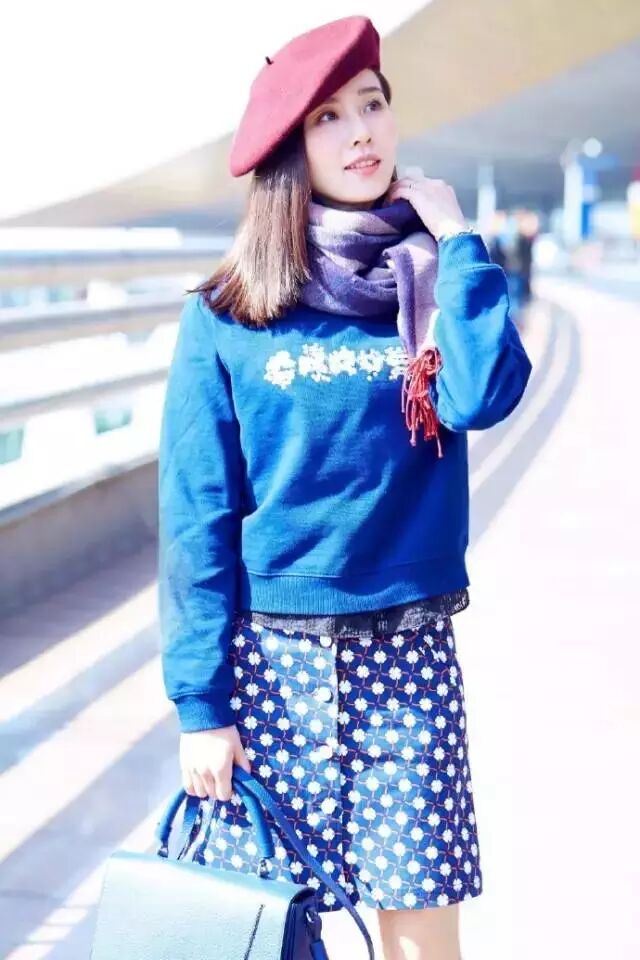 wuli恬淡的诗诗也用过这个搭配套路,穿卫衣的女生照样很显温柔呀
