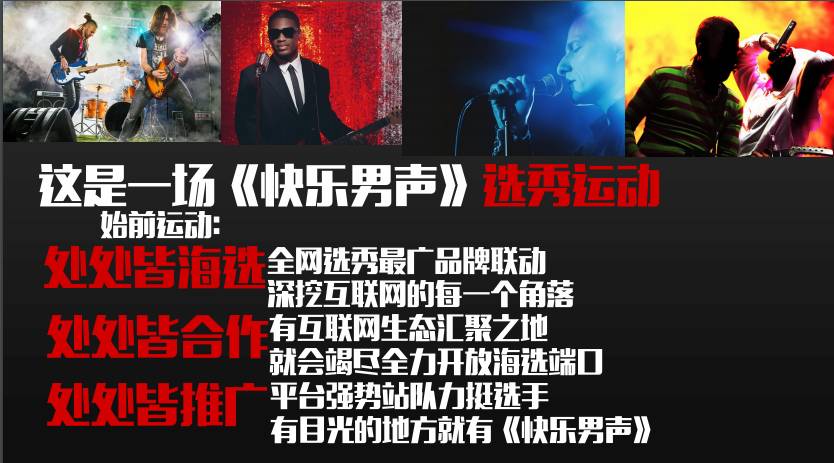 在内容为王、用户为核心的营销时代,芒果TV《2017快乐男声》作为一档全民公选的偶像养成运动,拥有从Q1到Q3的超长品牌传播周期,它将与品牌的线下渠道联合创造大型活动,为粉丝定制互动产品,并且邀请国内外一线主持和一线歌手深度参与,最大化发酵粉丝效应,配合深度的场景植入、最强的系列原创贴以及全程互动等多元化营销方式,它将助力品牌品效合一的最大化。而面对《2017快乐男声》这样不可多得的超级IP以及芒果TV这样制播一体、最青春的视频平台,相信没有广告主不为之动心!