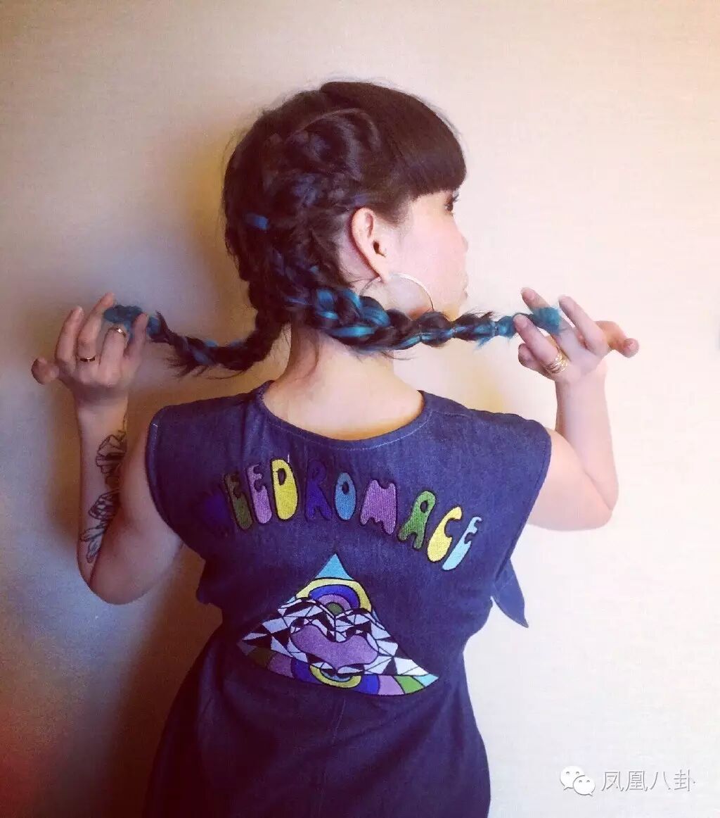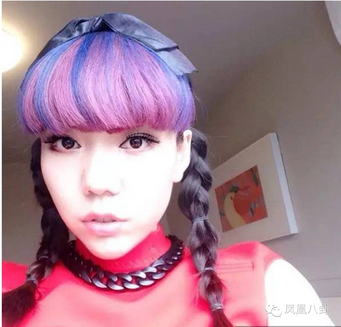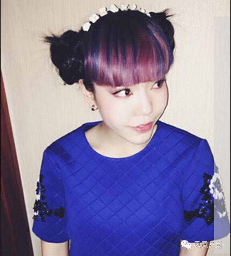 自拍里的吴莫愁也是厚厚的蓝紫色刘海护体!