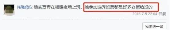 同时更有网友爆料“贾青曾在Y总会站台,她当时参加节目时的很多支持票就是那时认识的大老板们给她投的。”